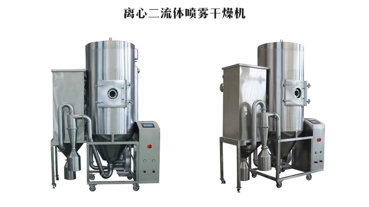 噴霧干燥機是將溶液或懸浮液直接干燥為固體顆粒的干燥設備。可由料液直接獲得干燥產品,省去蒸發、結晶、分離及粉碎等單元操作,可連續、自動化生產,操作穩定。采用這種干燥方法,噴霧干燥機中氣固兩相接觸表面積大,干燥時間短,一般干燥時間為5~30s,適宜于干燥熱敏性物料。干燥所得產品質量良好,可獲得30~50μm的微粒,產品流動性和速溶性好。