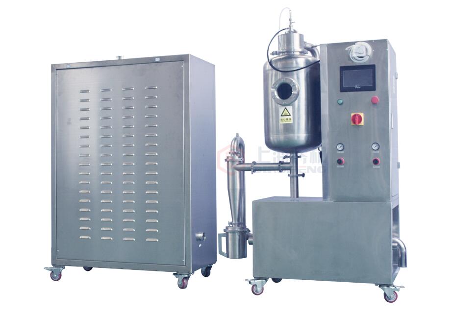 低溫噴霧干燥機(jī)適用于對熱敏感性物的干燥如生物制品、生物農(nóng)藥、酶制劑等,因所噴出的物料只是在噴成霧狀大小霧滴時,才受到干燥風(fēng)系統(tǒng),故只是瞬間受熱,能保持這些活性材料在干燥后仍維持其活性成份不受破壞。