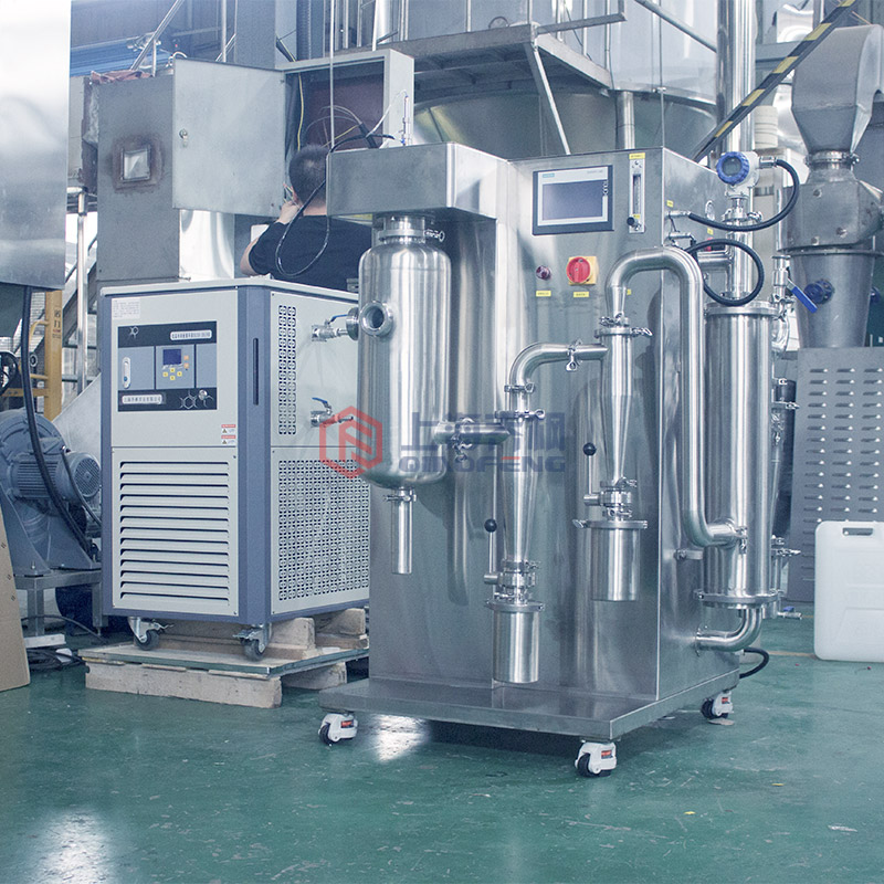 閉式循環噴霧干燥機是一種常見的干燥設備,它的工作原理是將液態物質通過噴嘴噴入干燥室中,并在高溫高壓下蒸發成為氣體,再將這些氣體通過冷凝器凝結成為粉末狀物質。在整個過程中,干燥室內的氣體是通過循環系統反復循環,以達到提高能源利用率和減少排放的目的。