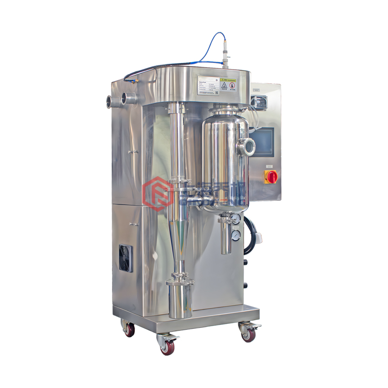 小型 實驗型 微型噴霧干燥機(噴霧干燥儀/噴霧干燥機)及其主要適用于高校、研究所和食品醫藥化工企業實驗室生產微量顆粒粉末,對所有溶液如乳濁液、懸浮液具有廣譜適用性, 適用于對熱敏感性物的干燥如生物制品、生物農藥、酶制劑等,因所噴出的物料只是在噴成霧狀大小顆粒時才受到高溫,故只是瞬間受熱,能保持這些活性材料在干燥后仍維持其活性成份不受破壞。